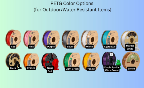 Now offered in both PLA, if you intend to use this inside, and PETG which is more suitable for outdoor conditions like higher temperatures and rain. The PETG option is more as compared to our normal printing speeds that we are able to use with PLA for all our 3D prints, we have to cut the speed down tremendously to get a nice finish with the PETG as it requires very hot and VERY slow printing temperatures. The PETG options are more limited as they aren't our normal stock of filament and only used for Fairy Houses/Bird Houses/Bird Feeders at this time.